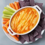 Salt in stages and taste again after adding buffalo sauce—it’s salty and tangy on its own. For the best melt, grate cheese from a block. Most ovens finish this dip between 20–25 minutes; pull it when the edges are vigorously bubbling.