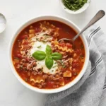 Lasagna Soup is the answer when you crave all the creamy, cheesy, tomato-rich comfort of classic lasagna but need dinner fast—and without a sink full of dishes. Using the pressure cooker, you’ll build deep flavor in minutes, keep the noodles perfectly al dente, and ladle up bowls that taste like they simmered all afternoon. Expect a bright tomato broth, gentle heat from red pepper flakes, and that dreamy ricotta-Parmesan finish that melts into every spoonful. It’s hearty yet balanced, with tender pasta and savory meat in each bite. This recipe is perfect for busy families, meal-prep lovers, and anyone filing away Easy Fall Soup Recipes, Easy Dinner Recipes, or Pasta Soup Recipes for the season.