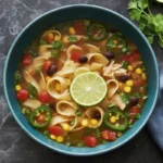 Chicken Noodle Soup gets a bold Southwest twist in this cozy, one-pot dinner that comes together in about 35 minutes. When you are tired of bland broth and plain noodles, this version steps in with chili, cumin, coriander, sweet corn, and hearty black beans. You still get everything you love about classic chicken noodle soup, but with a zesty kick, fresh cilantro, and a squeeze of lime that brightens every spoonful. The broth is light yet flavorful, the noodles are tender, and every bite has a mix of pasta, chicken, and vegetables. It is perfect for busy weeknights, chilly days, or whenever someone at home needs a comforting bowl that tastes a little more exciting than usual. If you like the idea of Chicken Pasta Soup and Southwest flavors, this bowl will quickly become a regular in your rotation.