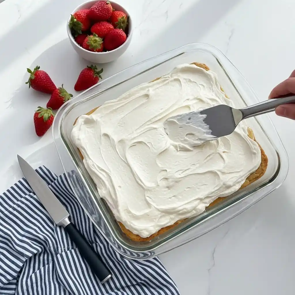 The single most important move is whipping to stiff peaks for a sliceable topping. Salt in stages—especially if using a different cake mix brand. Aim to finish baking between 15–20 minutes; the base continues to set as it cools. For ultra-clean squares, chill the frosted (untopped) pan 20–30 minutes before slicing, then add berries.