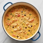 Taco Soup that actually solves the “what’s for dinner?” scramble: this creamy chicken version brings all the taco-night flavor in a silky, spoon-coating broth—fast. You’ll start with pantry-friendly staples (beans, corn, tomatoes) and a simple spice mix, then swirl in light cream cheese or Greek yogurt for body without heaviness. The result is balanced—gentle heat, bright lime, and a velvety texture that clings to every bite of tender shredded chicken.