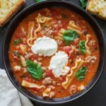 Lasagna Soup solves the craving for layered, bubbly lasagna when you need dinner now. Instead of stacking noodles and waiting on the oven, this one-pot wonder transforms pantry staples into a rich, tomato-basil broth loaded with tender lasagna noodles and a creamy ricotta finish. The best part? It’s naturally built for meal prep—portion the soup into containers, pack extra cheese in a small cup, and you’ve got three nights of low-effort, high-comfort dinners ready to reheat. The texture is exactly what you want: a silky, tomato-forward broth that’s hearty but spoonable, with wavy noodles that catch meaty bits and herbs in every bite. Flavor-wise, it’s all the familiar notes—garlic, oregano, basil, parmesan—no oven required. This recipe is perfect for anyone who wants Easy Fall Soup Recipes, quick Easy Dinner Recipes, or a reliable Pasta Soup Recipe that reheats beautifully mid-week.