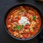 Lasagna Soup is the post-workout comfort you actually have time for. After a hard session, you want something hot, satisfying, and rich in protein—but not a project. This recipe takes classic lasagna flavors (savory meat, herby tomato broth, creamy ricotta) and turns them into a single pot you can ladle into pre-portioned bowls. The texture lands right between cozy pasta soup and deconstructed lasagna, with noodle ribbons, tender beans for extra protein and fiber, and a finishing dollop of creamy cheese for recovery-friendly richness. If you’re feeding athletes, meal-prepping for the week, or just craving hearty soup that won’t derail your evening, this is your new weeknight winner.
