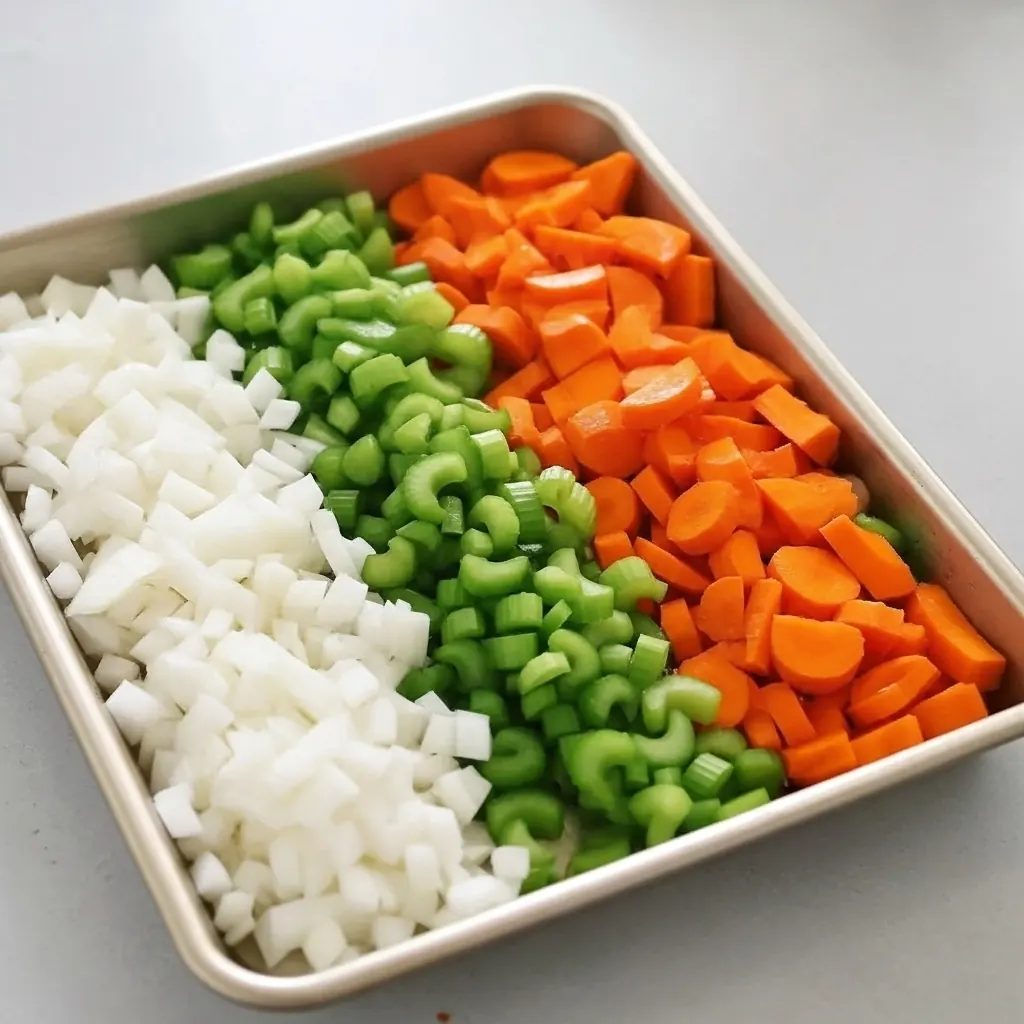 Prep the aromatics: Dice the onion, celery, and carrot, and mince the garlic.
