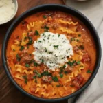 Lasagna Soup is what you make when you’re craving all the cheesy, saucy comfort of baked lasagna but real life only gives you half an hour. Instead of stacking noodles, sauce, and cheese in a pan, everything simmers together in one cozy pot of tomato broth, ruffly pasta, and tender ground beef. Then comes the show-stopper: a fluffy ricotta–parmesan swirl dolloped on top that slowly melts into the bowl, giving you that dramatic “stir-in” moment you’ve seen all over TikTok. The broth is rich and creamy, the noodles are perfectly tender, and every bite feels like a hug. This creamy lasagna soup fits right in with easy fall soup recipes and one pot lasagna soup ideas for busy families. If you’re always on the hunt for cozy, cheesy lasagna soup recipes, this one is about to become a new weeknight favorite. It’s ideal for easy dinner recipes on chilly weeknights, but impressive enough to serve to friends with a big salad and warm bread on the side.