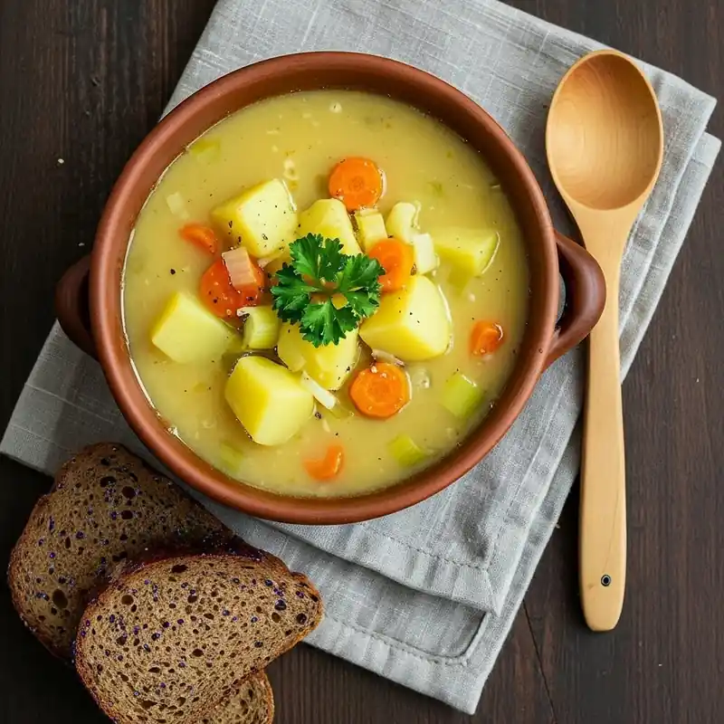 Hearty and aromatic with classic roots. Build flavor with leeks, carrots, and marjoram, simmer until the potatoes turn tender, then mash part of the pot for that signature rustic texture. A spoonful of mustard at the end adds gentle tang. Serve with chopped chives and warm rolls.