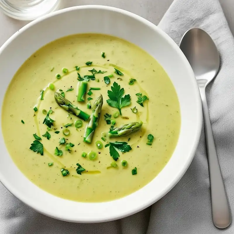 Springy, bright, and comforting. Simmer potatoes and asparagus with leeks or onions, blend most of it, then fold in tender tips for texture. A swirl of coconut or cashew cream gives body while keeping it plant-based. Lemon zest and fresh herbs wake up every spoonful.
