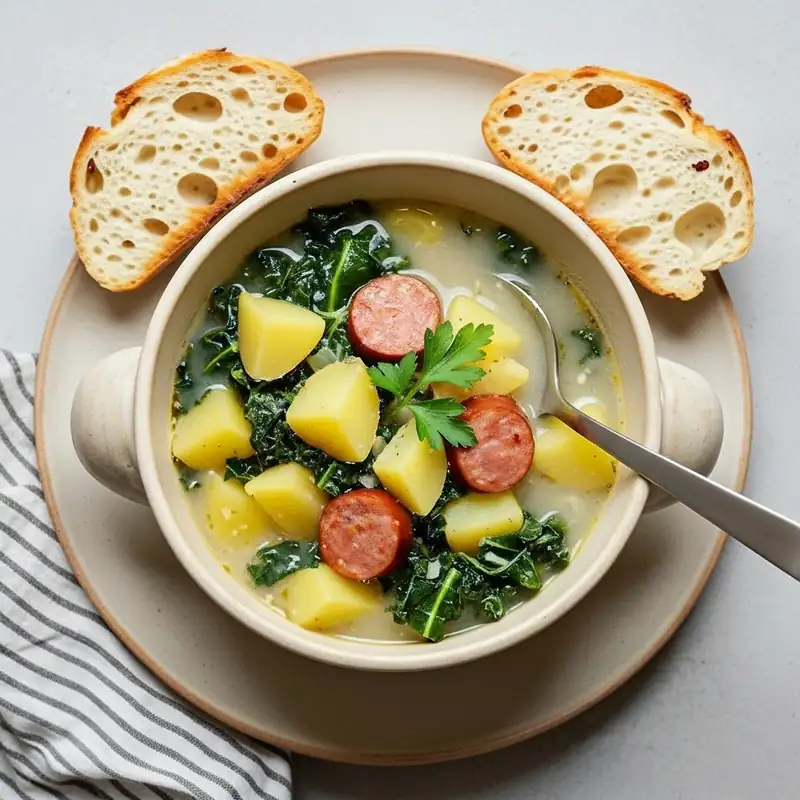 Smoky, savory, and deeply satisfying. Brown the sausage to build fond, scrape it up with broth, then simmer potatoes until velvety. Stir in a splash of cream for body and shower with parsley. Game day or cozy night in—this one never misses.