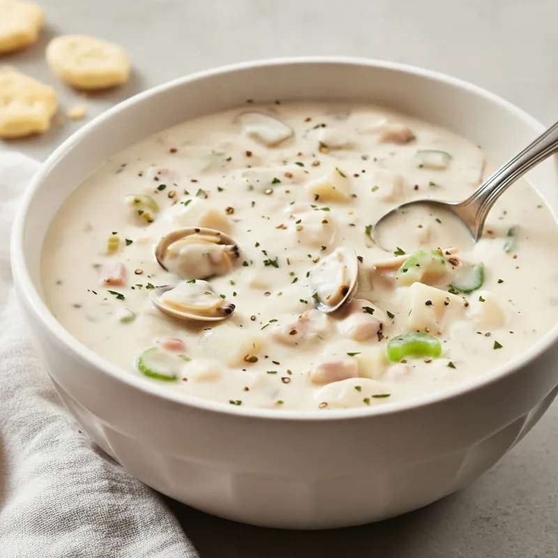 All the chowder comfort you love: tender clams, silky broth, and hearty potato chunks. Start with aromatics and a little fat, add broth and potatoes, then fold in clams and their juices at the end so they stay tender. A final splash of cream brings it together. Serve with oyster crackers and a squeeze of lemon for brightness.