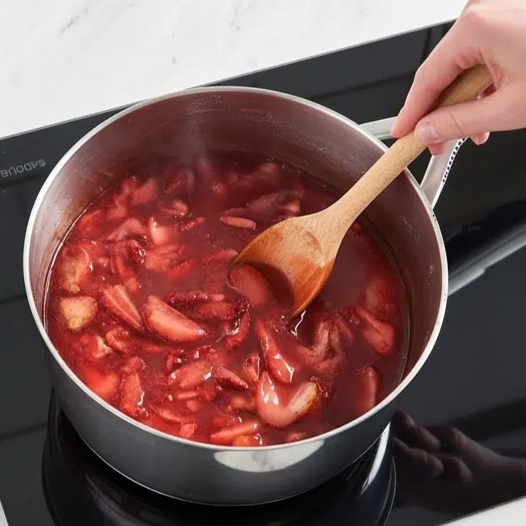 - Fold in fresh berries (texture): Stir the remaining sliced strawberries into the cooled sauce for bright, jammy-fresh contrast.
