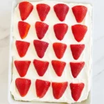 - Top pattern (optional): Add neat rows of halved strawberries for a clean visual cue of strawberry shortcake.