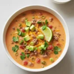 Taco Soup solves the “what’s for dinner?” question when time is tight yet you still want a satisfying bowl with real depth. This stovetop version brings taco‑night flavor into a creamy, spoonable soup—rich broth, juicy tomatoes, tender peppers, and crumbles of seasoned beef or turkey—all in one pot. The texture is silky from cream cheese and stock, with pops of freshness from cilantro, lime, and avocado. It delivers hearty comfort without the carbs. Perfect for weeknights, meal prep, or anyone seeking a gluten‑free, low‑carb dinner that tastes like you simmered all day.