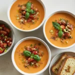 This no-cook gazpacho shows how tomato soup can be fast, elegant, and intensely fresh on the hottest nights. It keeps 3–4 days, so make extra for easy lunches. If you enjoy it, leave a rating or share your bowl with a sprinkle, a swirl, and a squeeze on top.