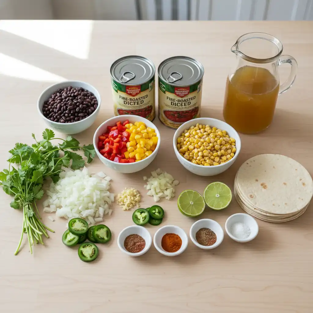Pour in the fire-roasted tomatoes, black beans, corn, and vegetable broth. Scrape the bottom of the pot to release any browned bits. Bring the soup to a boil, then reduce heat to a gentle simmer. - Simmer to meld flavors.